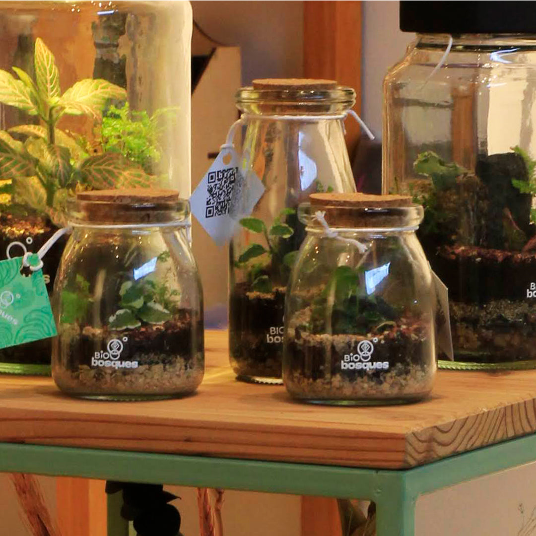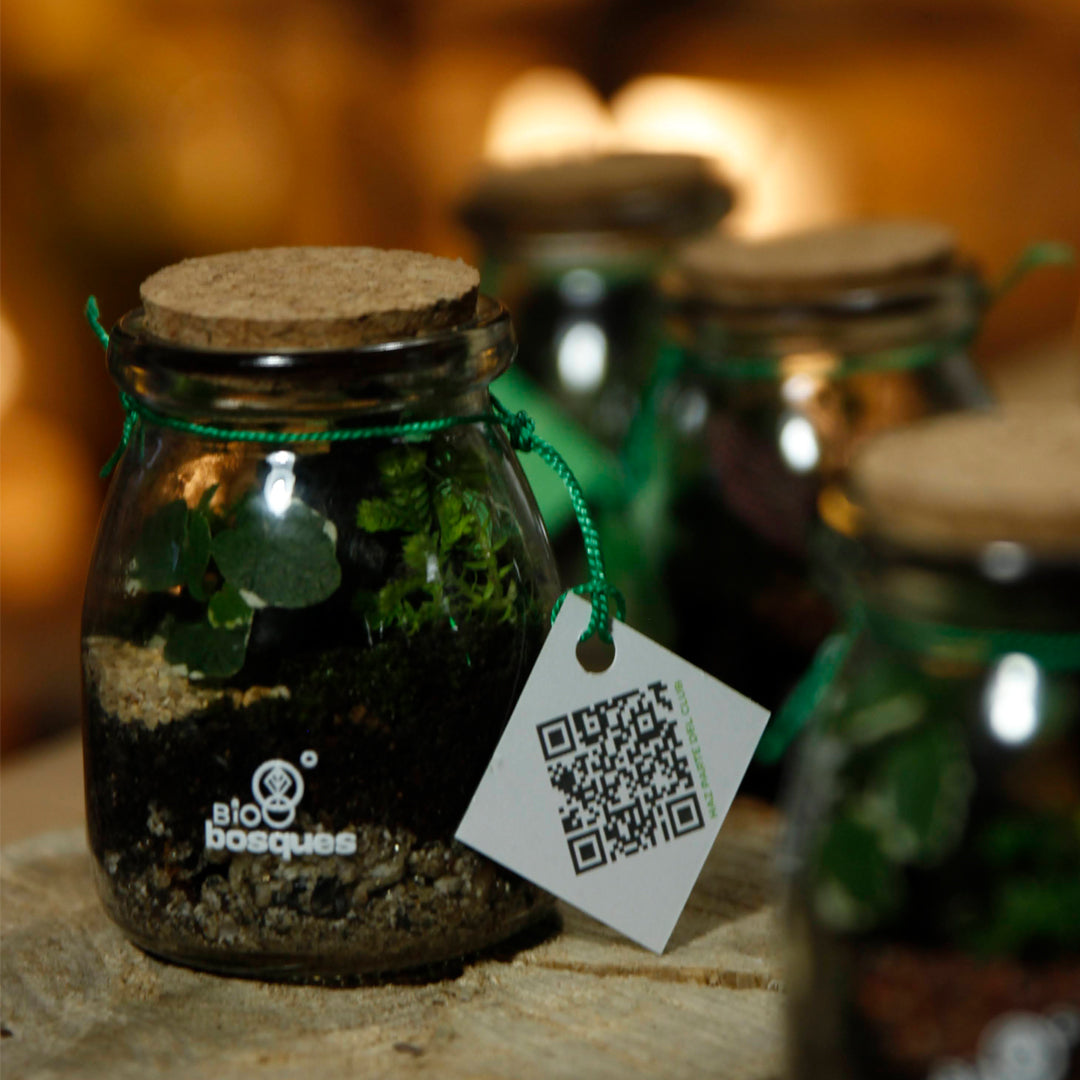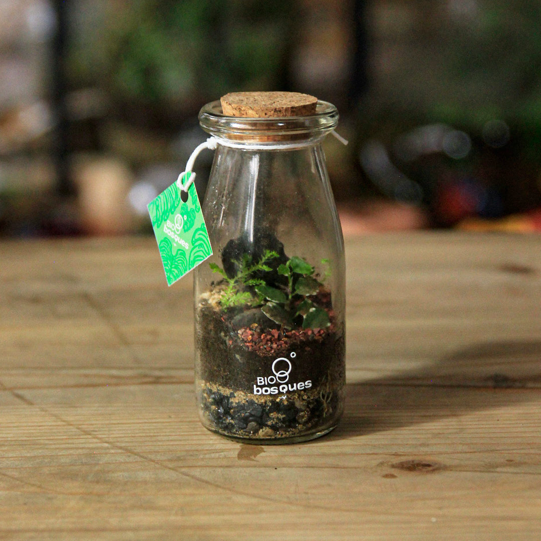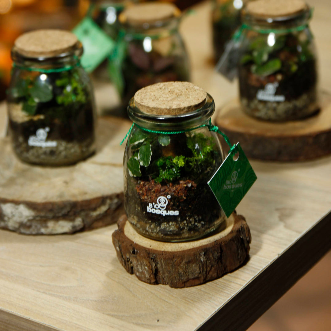 Ecosistema - terrario en recipiente de vidrio, la mayoría reciclado por nuestra esencia de economía circular, tapas de materiales sostenibles. El reciente de vidrio puede variar sujeto a disponibilidad.